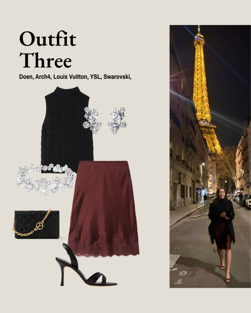 Stepping into Paris always feels like stepping into a real-life fashion moment and it’s one of the reasons I love the city so much. Parisian style has this effortless, timeless quality that I’m always drawn to. As this was just a quick two-day trip, I kept things simple and packed just three outfits: one for day one, a dinner look, and another for day two.